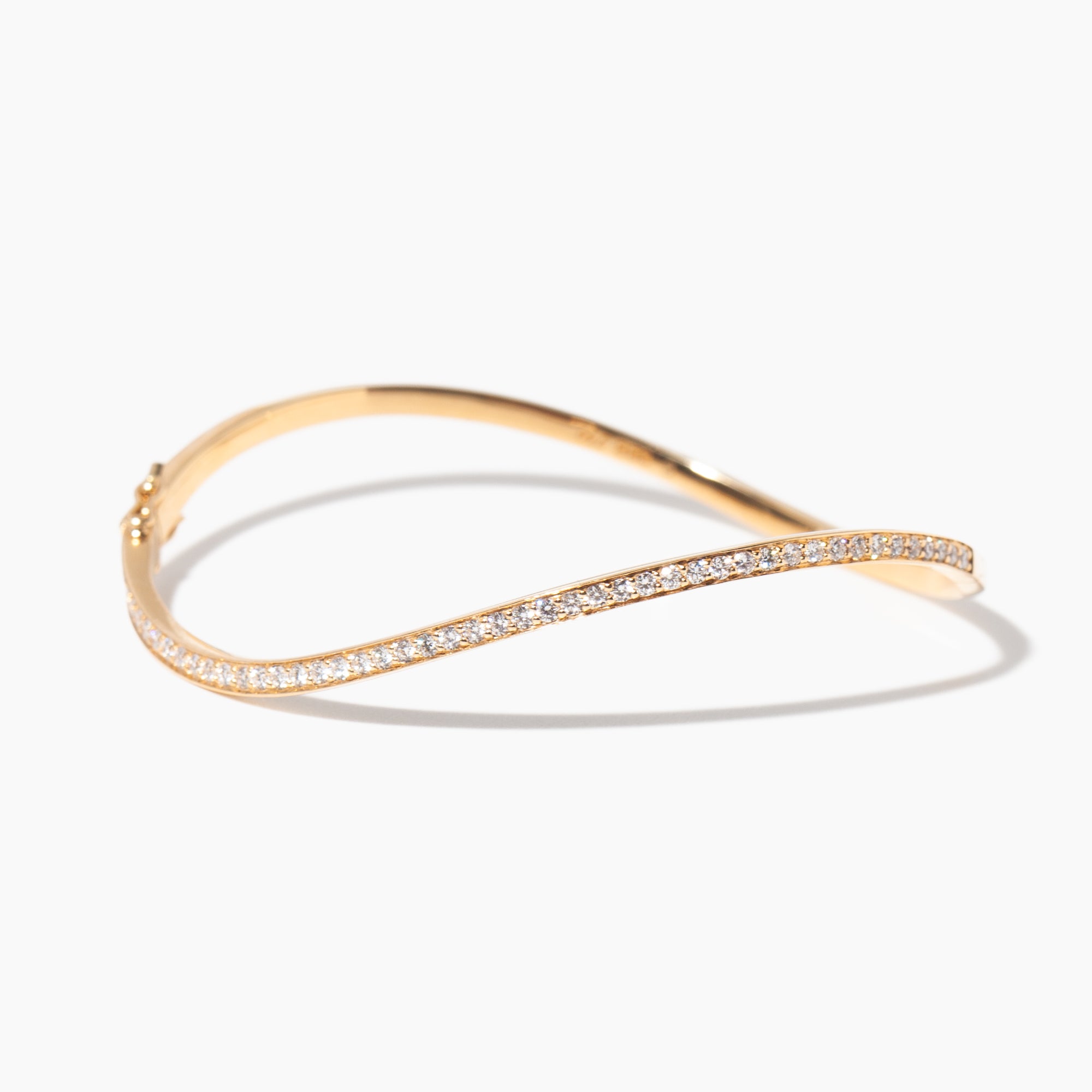 The Courbe bracelet is a timeless and classic bangle, resembling the iconic Bille Brahe wave design with a pavè set of diamonds in the front. The bangle bracelet is designed for a snug fit so it dosen't turn when worn. Handmade in Italy.