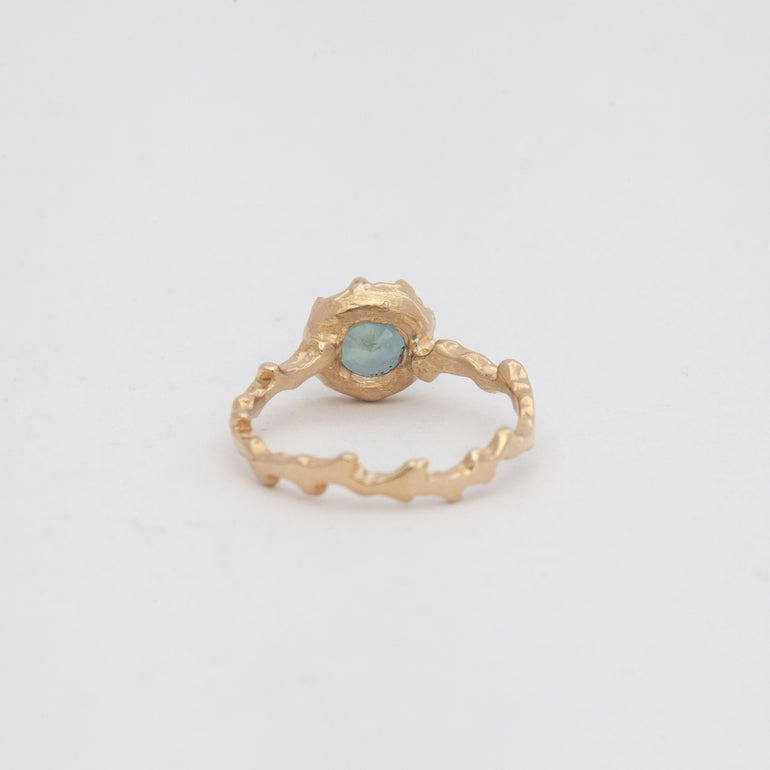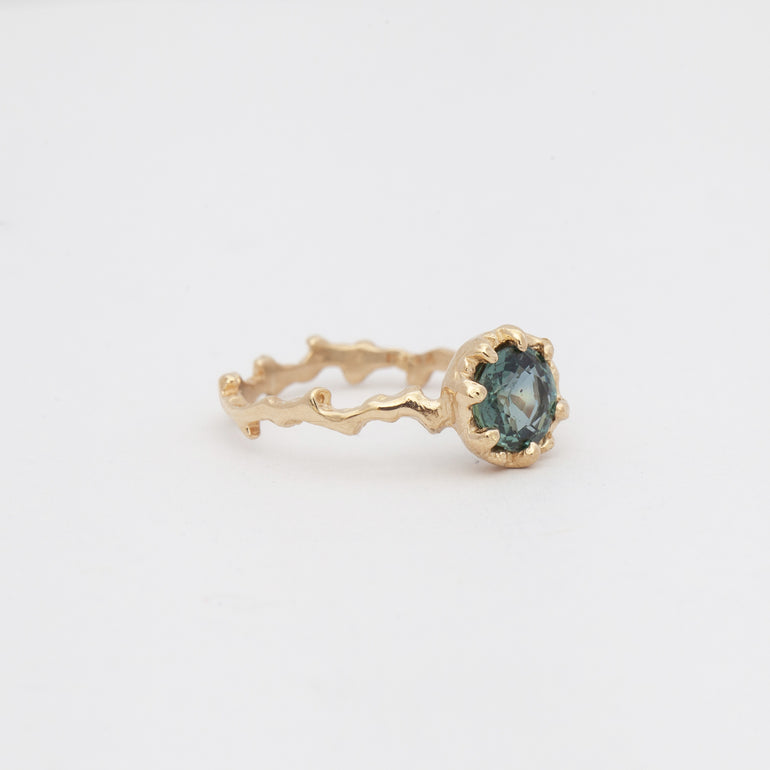 The organic texture and jagged lines of one of our favorite Misa bands takes on a new, grand dimension with this stunning sapphire ring. With a design carved by hand from wax, this ring captures a modern, alternative bridal vibe thanks to its rustic feel and striking gemstone center. If you've already said "I do", then wear it on your right ring to make a colorful statement. Made in the U.S.A.