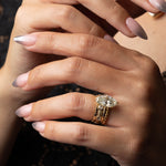 The Petite Old Mine Cut Diamond Finley Ring showcases antique old mine cut diamonds arranged in a bold bar link style, drawing inspiration from vintage bracelets. Each diamond is bezel set with a polished finish, while the links feature a brushed satin texture that enhances warmth and radiance. This ring stands out beautifully alone or layered with other cherished jewelry.