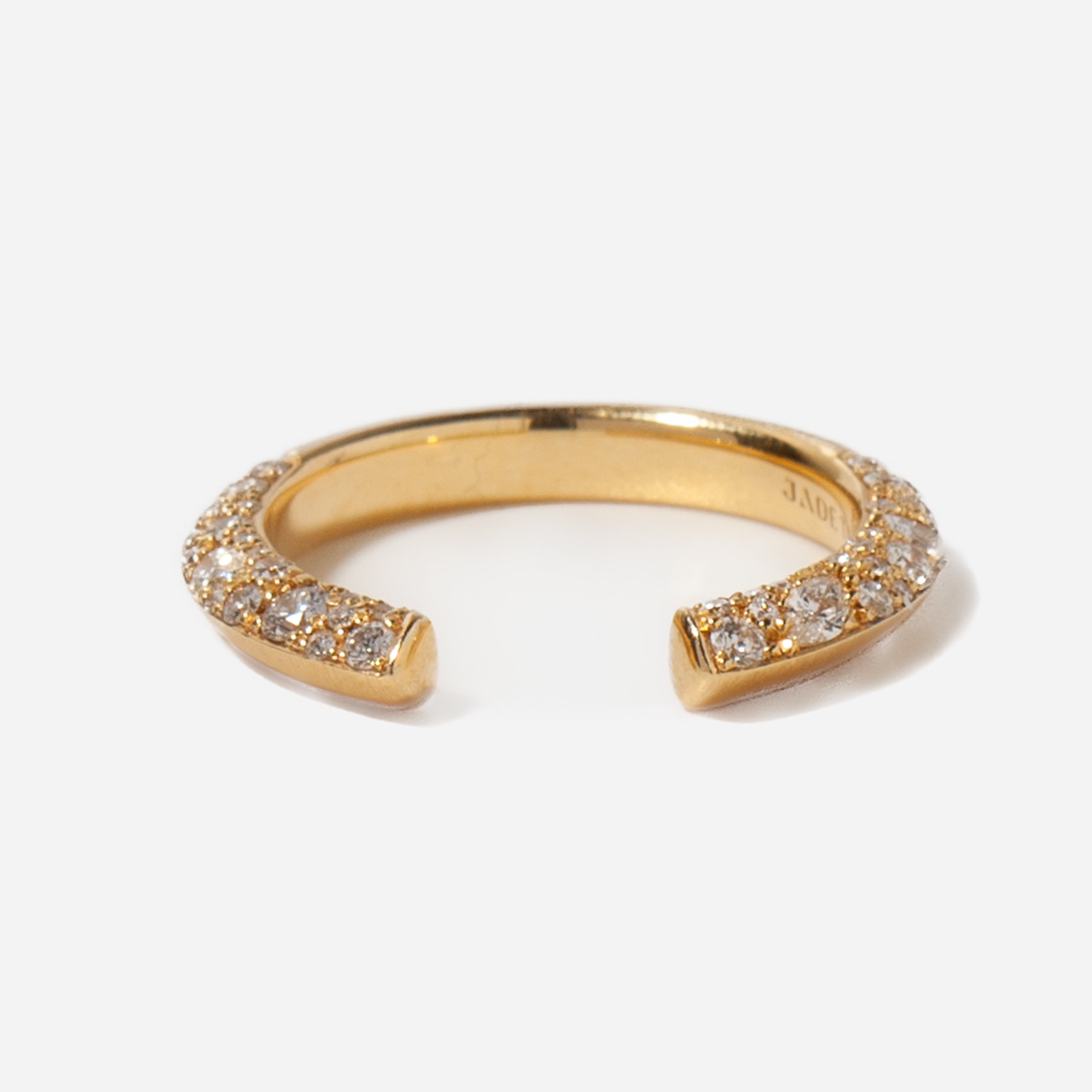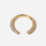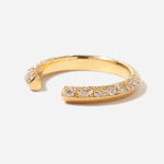 The best of both worlds, the Frankie Half Diamond Open Band gives you the casual coolness of a gold heavy ring with all the sparkle of a diamond band. Designed to be the perfect fit for your engagement ring center diamond.