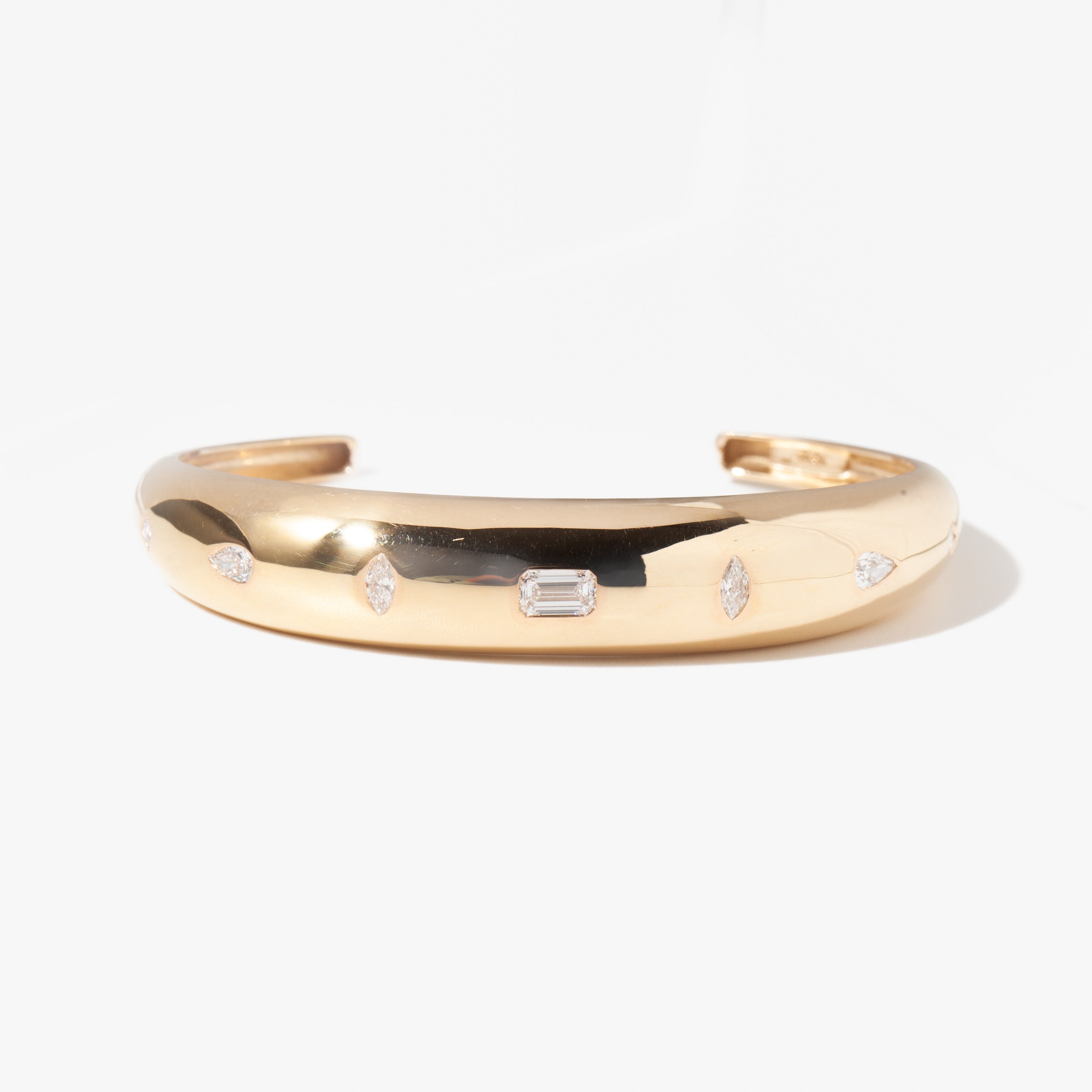Aura Cuff With Gypsy Set Emerald, Pear, Marquise and Princess Cut Diamonds