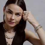 This striking new creation from CRZM showcases oval links chaining together with coils wrapped around, meticulously crafted from solid sterling silver. Hand-sculpted by Caitlin Mociun, the piece is fastened with hook closure, blending sophisticated artistry with a unique, sculptural aesthetic.