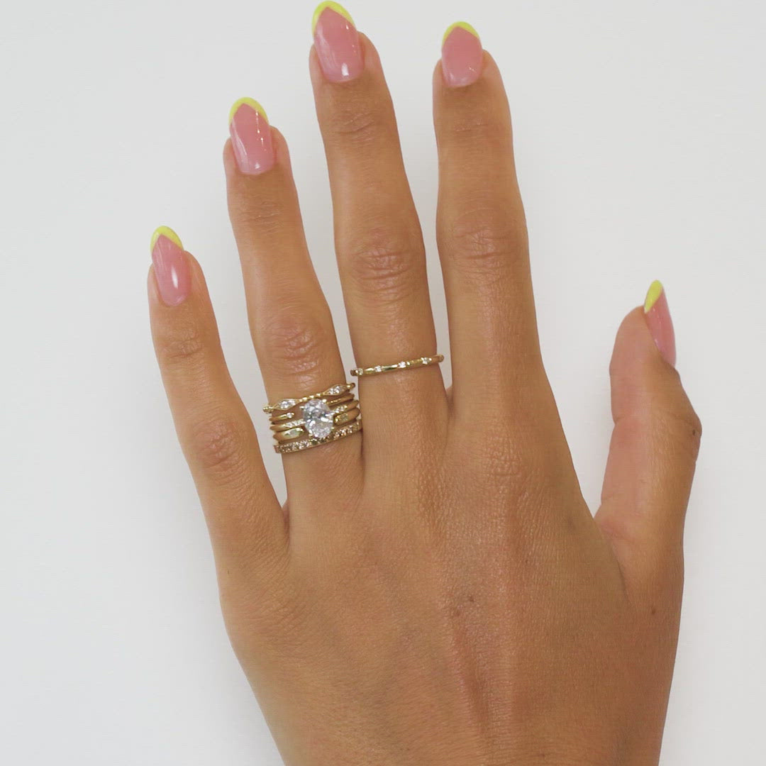 We love how Jennie Kwon revisited this essential style by adding glistening baguette diamonds to its tips. The open design makes it a perfect stacking band, accommodating all types of shapes and settings letting you add a little extra sparkle anywhere you like. For a more minimal look, wear it alone to make its distinctive form even more special. Made in the U.S.A.