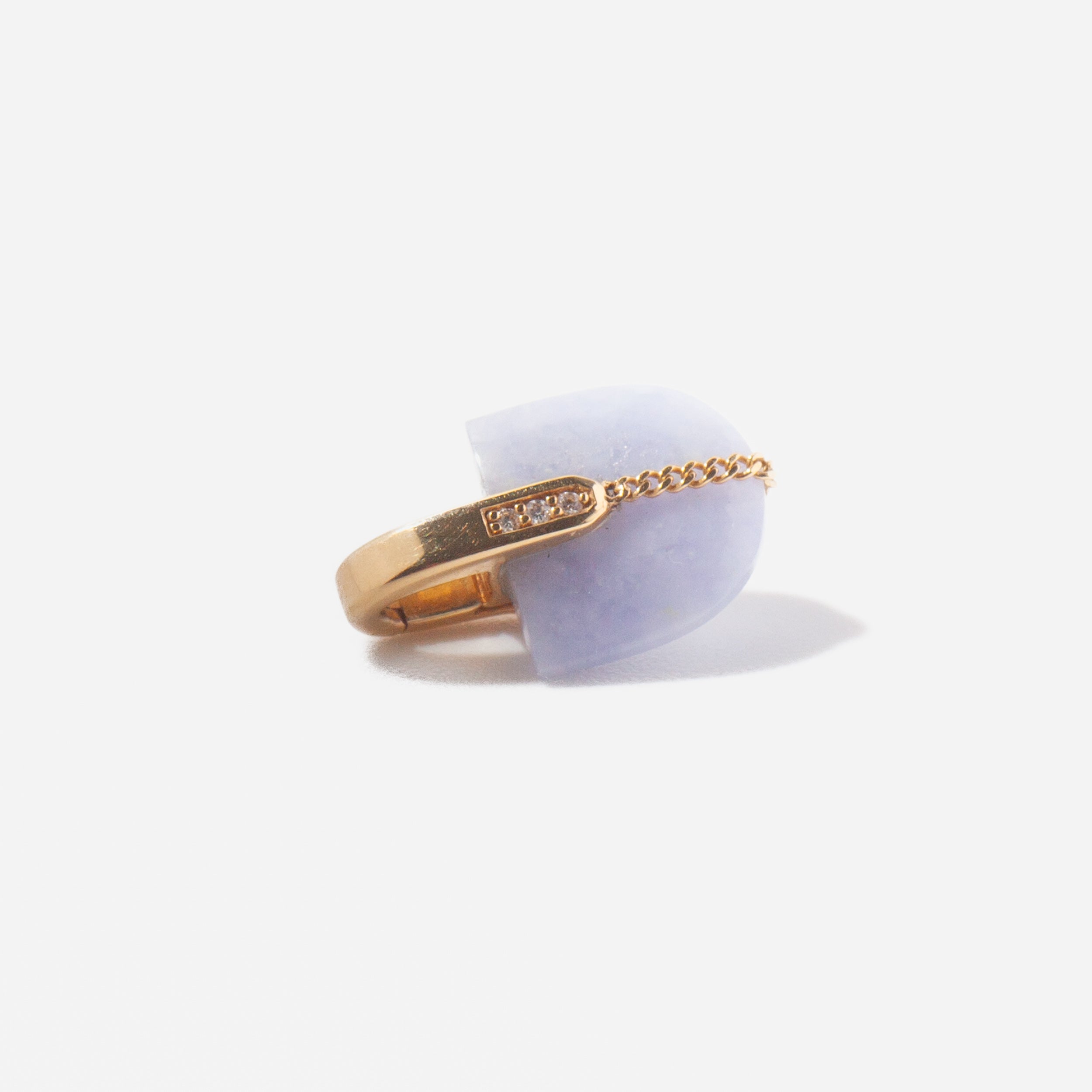 14 karat yellow gold with three round lab-grown white diamonds with lavender jade.