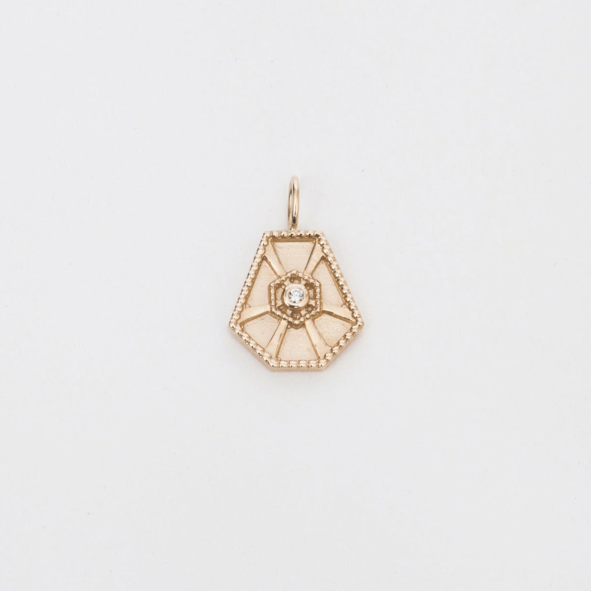 When past poets wrote about Arcadian beauty, we bet they were imagining a landscape lit by the sun like the diamond lights up this elegant gold pendant. A single bezel-set gem throws off six golden rays with two halos of milgrain beading for extra glamour. Slip this charm on your most beloved necklace for a bright new look. Made in the U.S.A.