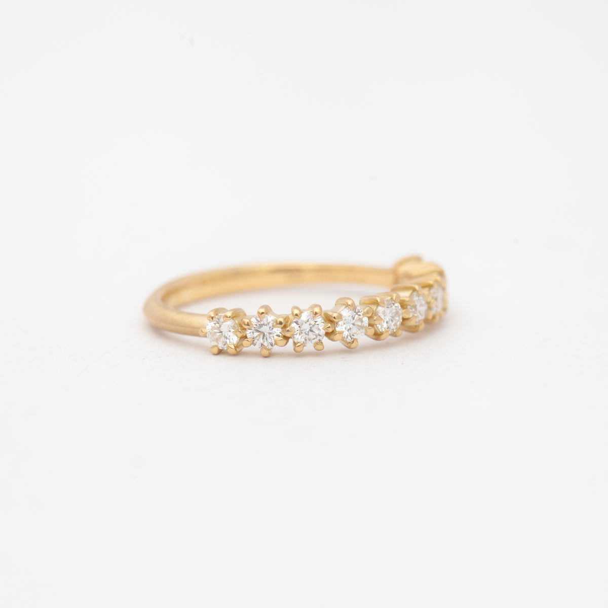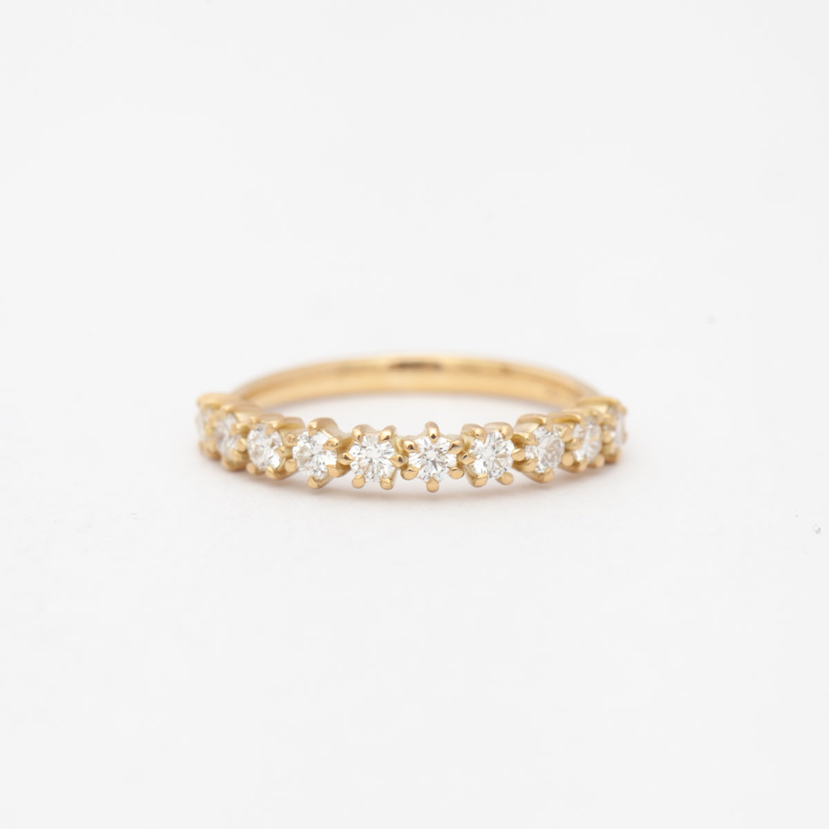 Easy to wear and versatile in design, the Catherine Half Eternity Band by Jade Trau will quickly become one of your go-to collection staples. The half-way design allows the ring to sit comfortable on the finger—but why stop there with the thoughtfulness? The back half of the band features Trau's signature knife-edge technique, bringing a modern spin to a classic design. Perfect as a wedding band or when worn as an everyday stacking ring.
