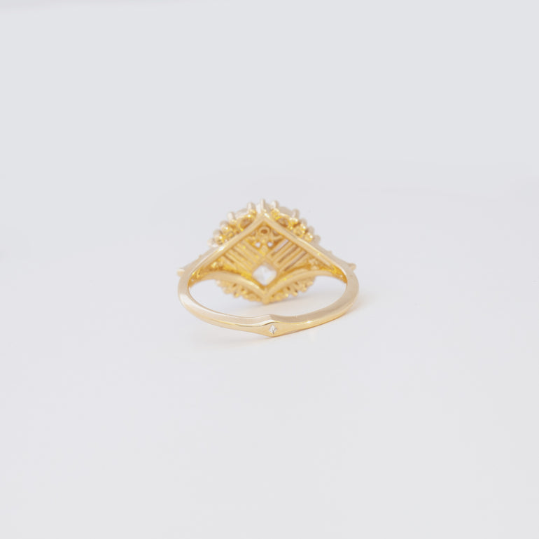 Mirrored Cluster Ring with Asscher Cut Diamond