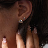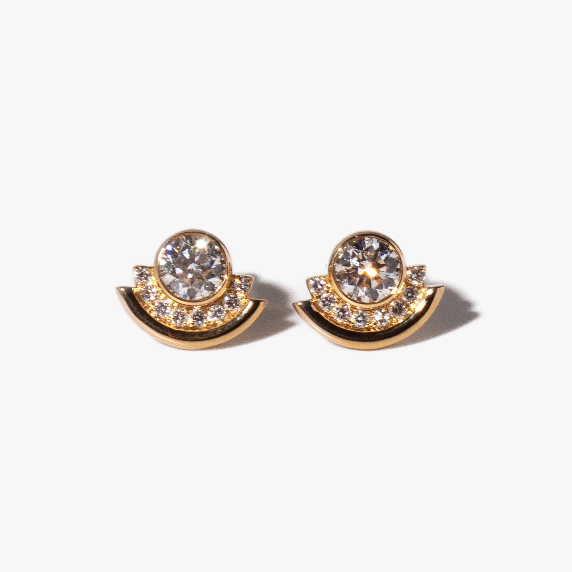 These gorgeous, dazzling diamond studs are designed by 1st generation Mexican-American designer Casey Perez, her attention to detail and love for the craft of jewelry making are apparent in her designs. Crisp lines of architecture, the emotion of art, and the organic beauty of nature all find their way into her distinctive creations. Designed and crafted in Brooklyn, NYC.