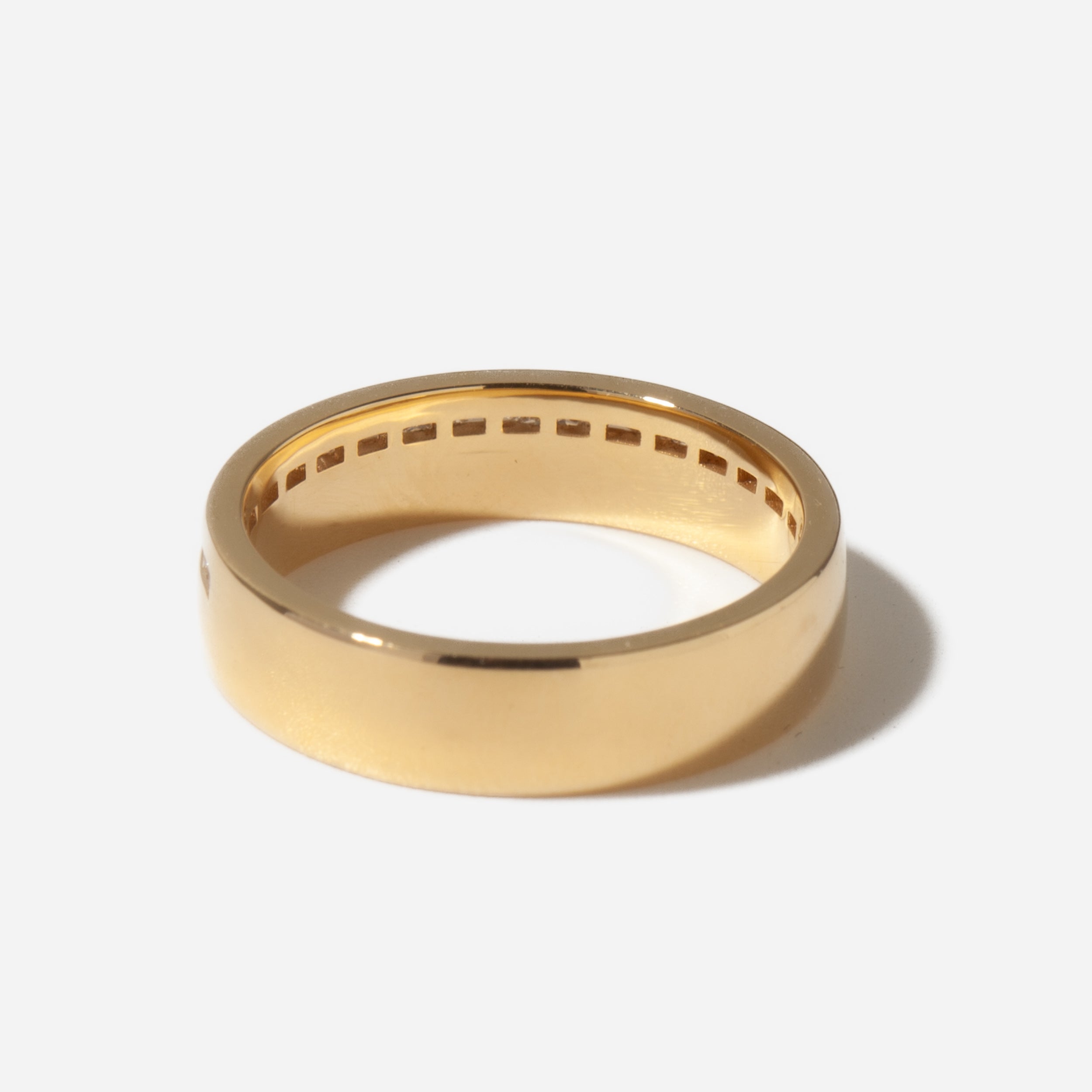This playful Corridor Band takes inspiration from our popular Mixed Flow Band. With an array of diamonds carefully placed just off the center, it's sure to be a must-have. The intricate design and subtle shine make it a dream for any hand lucky enough to wear it. Made in the USA.