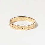 A spin on the beloved Shoji Band, this thinner style emulates the same architectural form of shoji doors which directly informs the hand-carved pattern on this unisex band. Washi paper and wood are transformed into solid gold, each rectangle carved one at a time for a perfectly imperfect finish that will weather with age and wear. Forever changing and forever the same; a perfect way to say "I do". Made in the U.S.A.