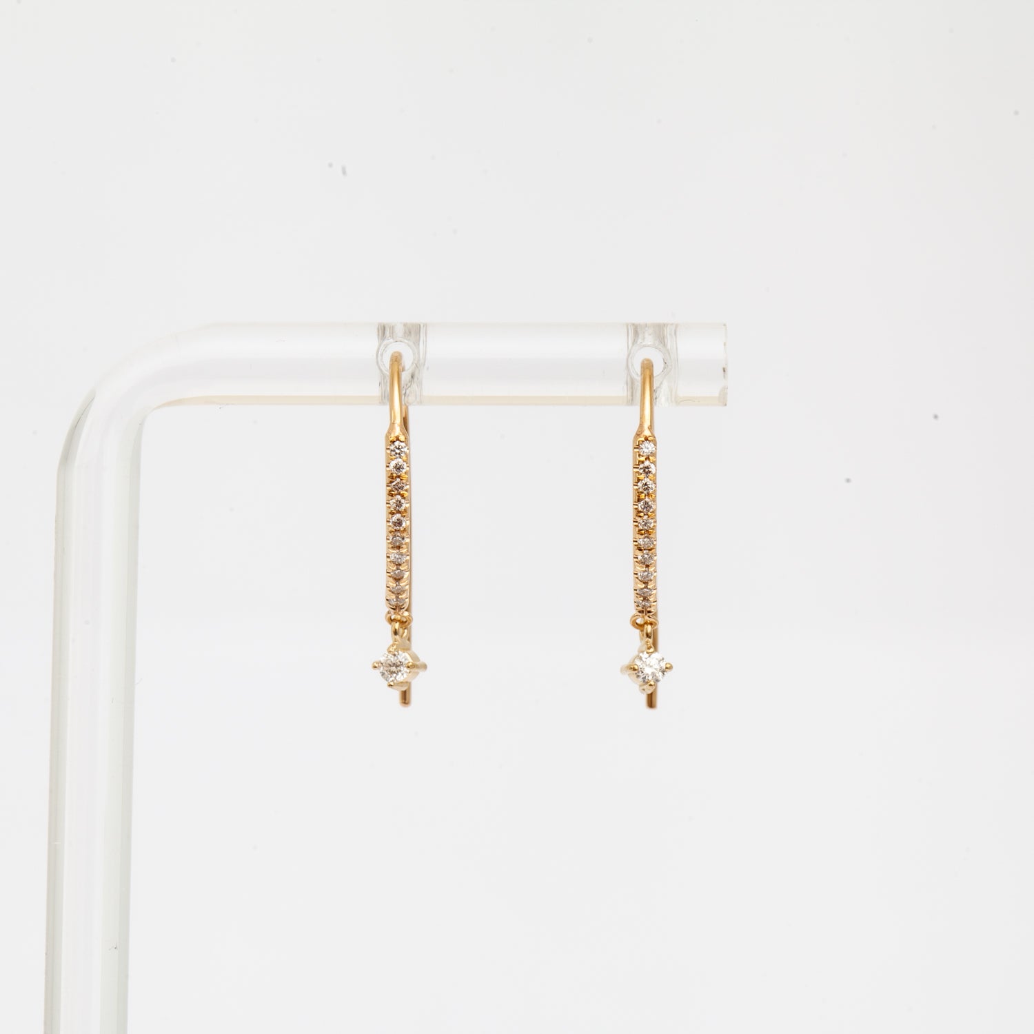 Pavé Diamond Bar & Dangling Diamond Short Wire Threader Earrings