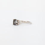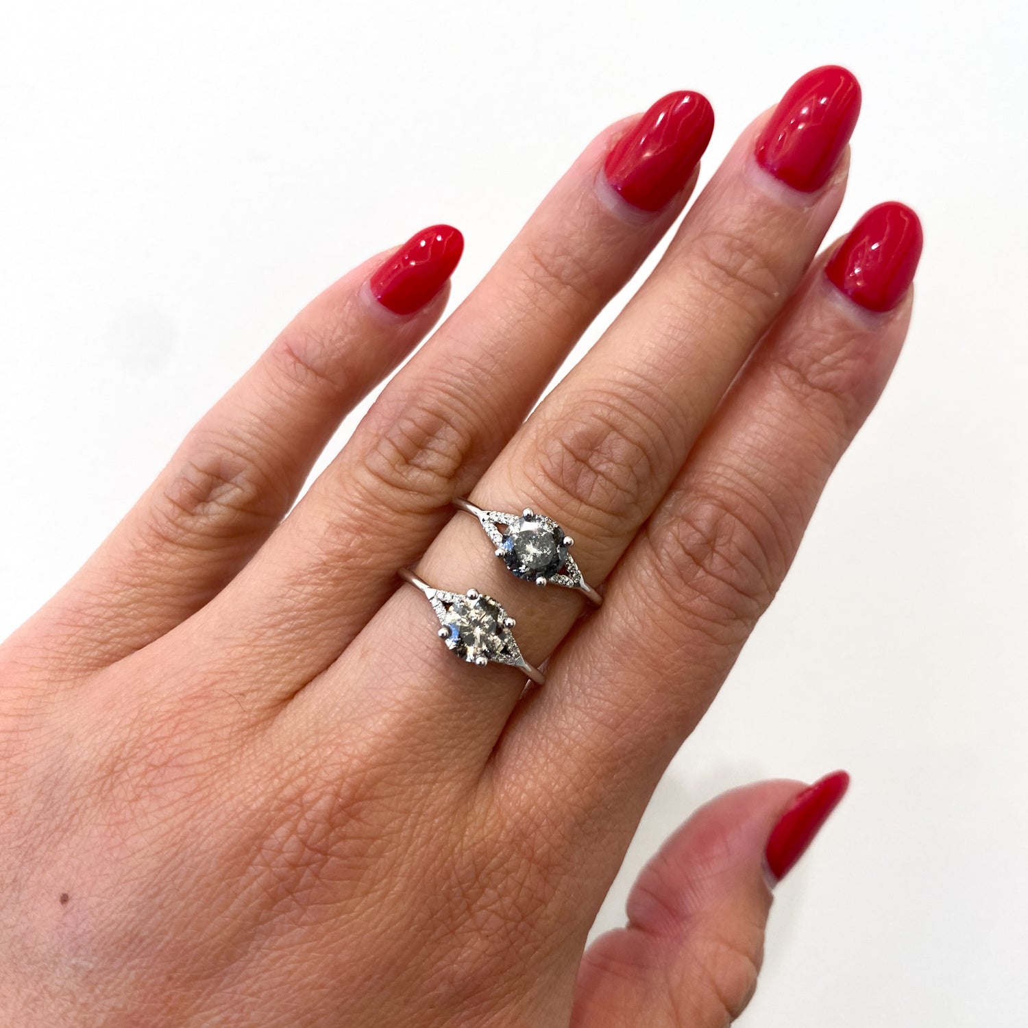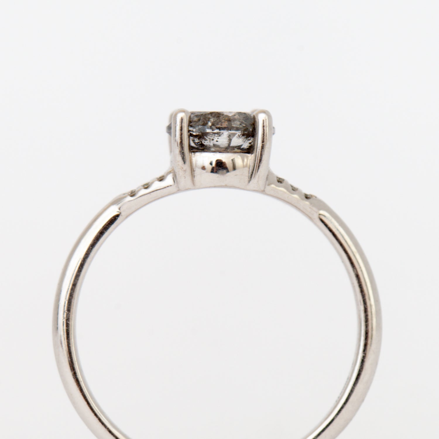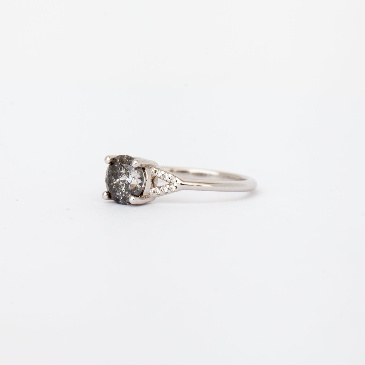 1 carat salt and pepper diamond set with twelve 0.8 mm white brilliant-cut diamonds.