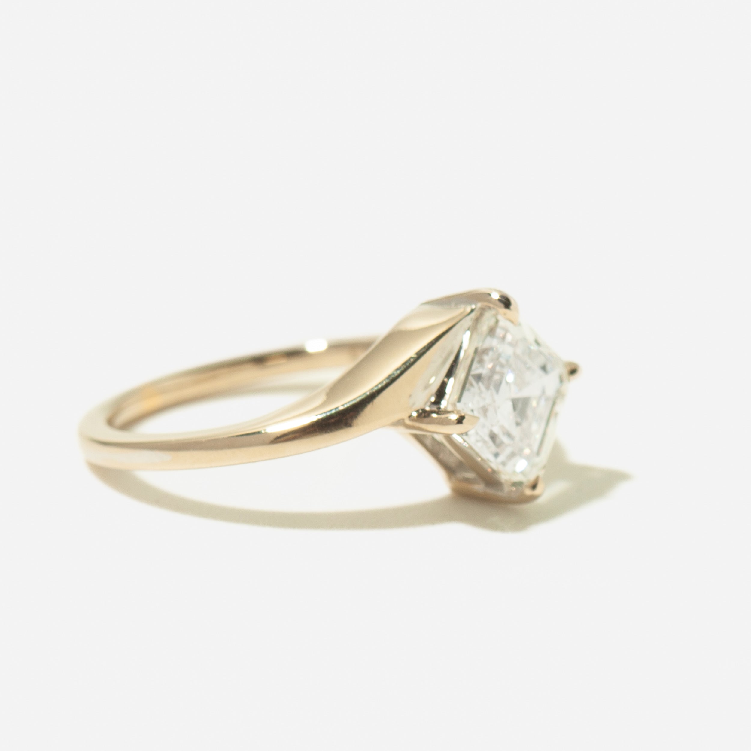 From The Future Fine , Cayan is all about structural movement; a fluid rhythm designed to wrap the stone in elegance. This one-of-a-kind ring features a reclaimed diamond that captured our hearts the moment we laid eyes on it. Cradled between two interlocking curves, this kite-set stone is as unique as it is stunning. Designed and made in the U.S.A.