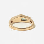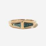 A tapered baguette-cut teal Montana sapphire and a richly veined turquoise inlay. The sapphire's cool, faceted brilliance plays beautifully against the turquoise's deep, earthy matrix, two stones from the American West united in a single, striking design.