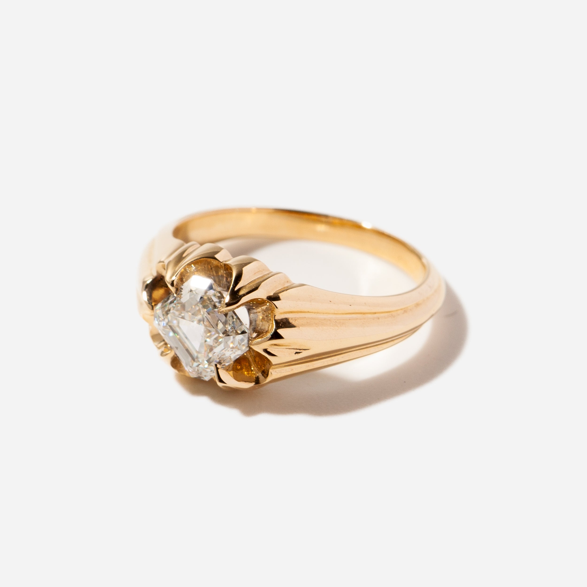 14 karat yellow gold with a GIA certified square emerald cut diamond totaling 1.21 carats, (I color, VS2 clarity)