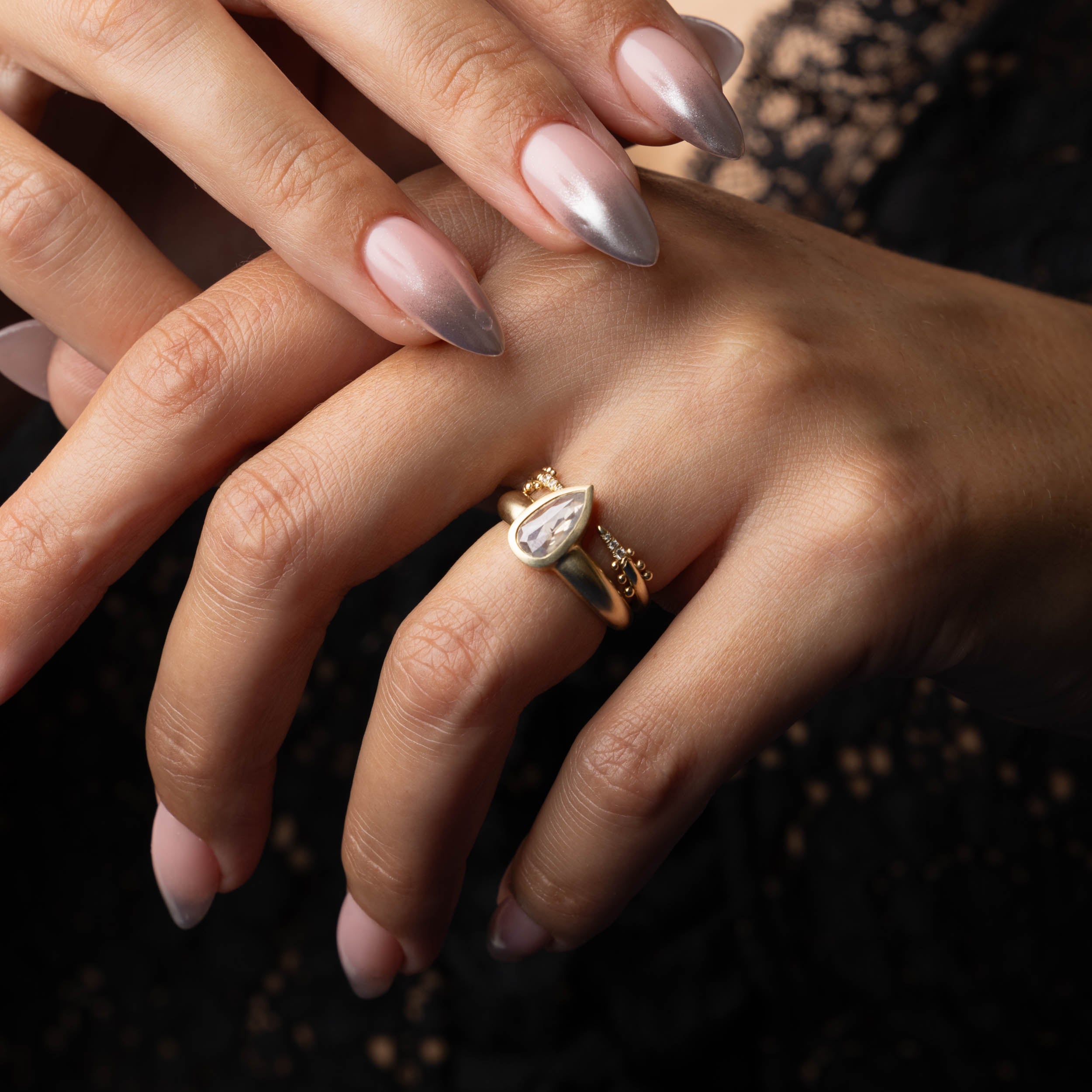 0.94 ct Pear Rose-cut Champagne Diamond Low Tide Wide Ring