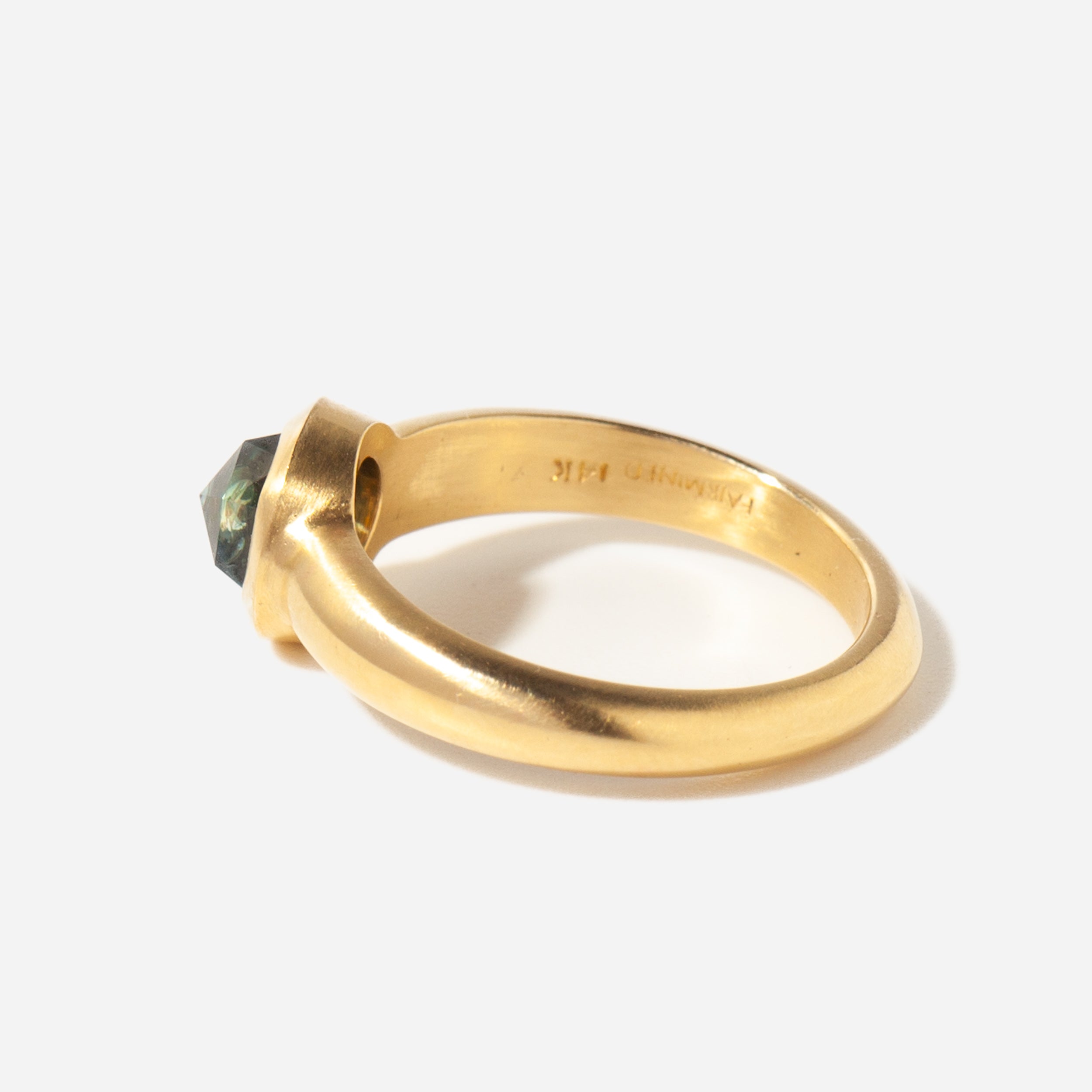 14 karat fairmined yellow gold with a rose-cut sapphire from Montana totaling 1.25 carat.