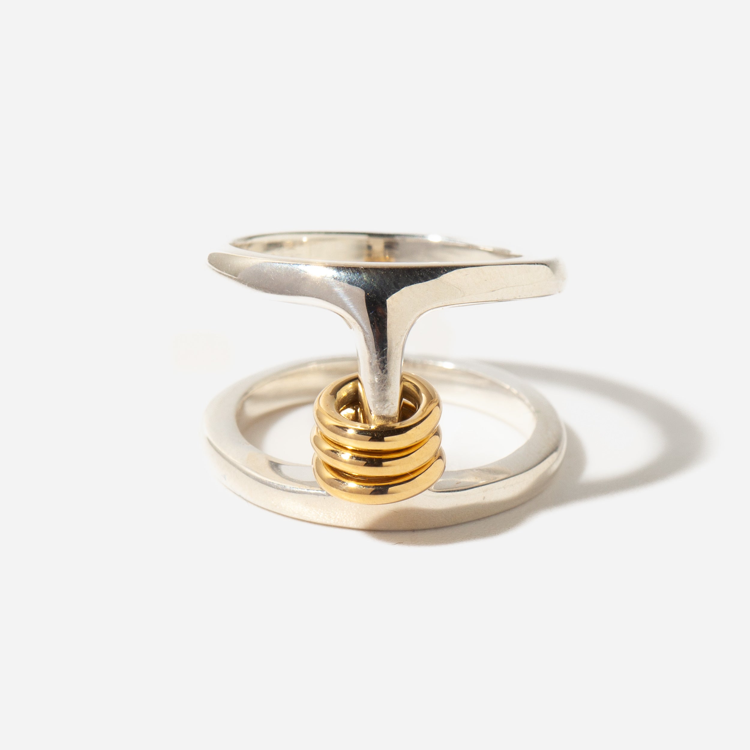 The Phantom SK Ring by Spinelli Kilcollin introduces a fresh design that captures our attention. This single ring features compelling negative space, highlighted by the signature SK rings at its core. It offers the same fluid movement typical of their collection but stands out as a distinct addition for those who already own a classic linked ring and wish to expand their assortment.