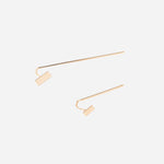 The rectangle in this pull-through earring acts as a stud while the bar dangles from behind your earlobe and sways back and forth on a delicate hidden chain. The weight of the bar keeps this earring in place (there’s no need for an earring back), and the chain fits comfortably in your ear. SHW is inspired by minimal forms, the collection embraces the unusual and honors individual style, as well as the intimate ritual of wearing jewelry. Designed and handmade in NYC.