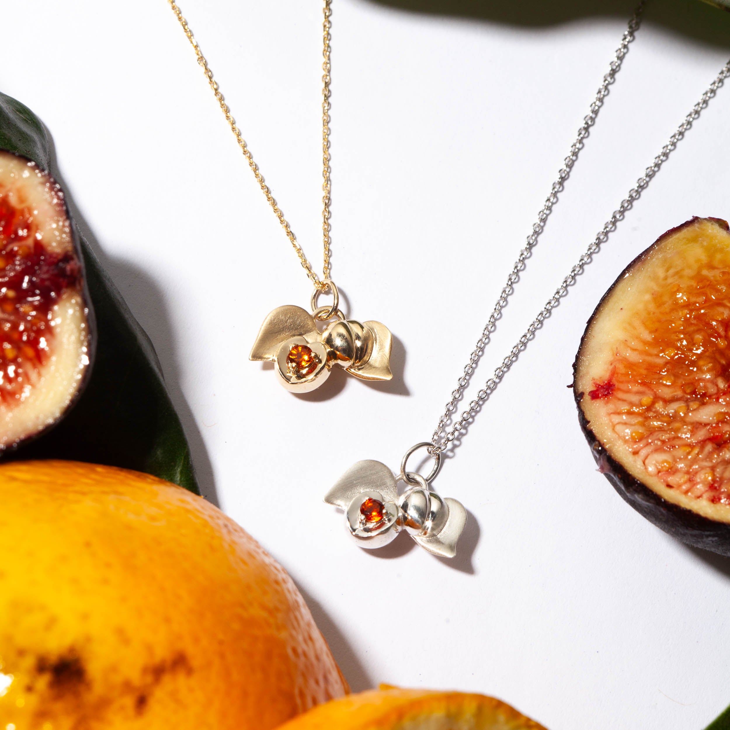 Award-winning Amaro meets fine jewelry? We'll cheers to that. Created through a exclusive collaboration between No.3 Fine Jewelry and Bar Brucato—San Francisco’s one and only Amaro distillery + restaurant—this necklace features a hand-sculpted apricot bunch inspired by one of the core ingredients behind Brucato's award-winning Amaro. The centerpiece, a citrine pit, adds a radiant sparkle that celebrates all of life's sweetness.