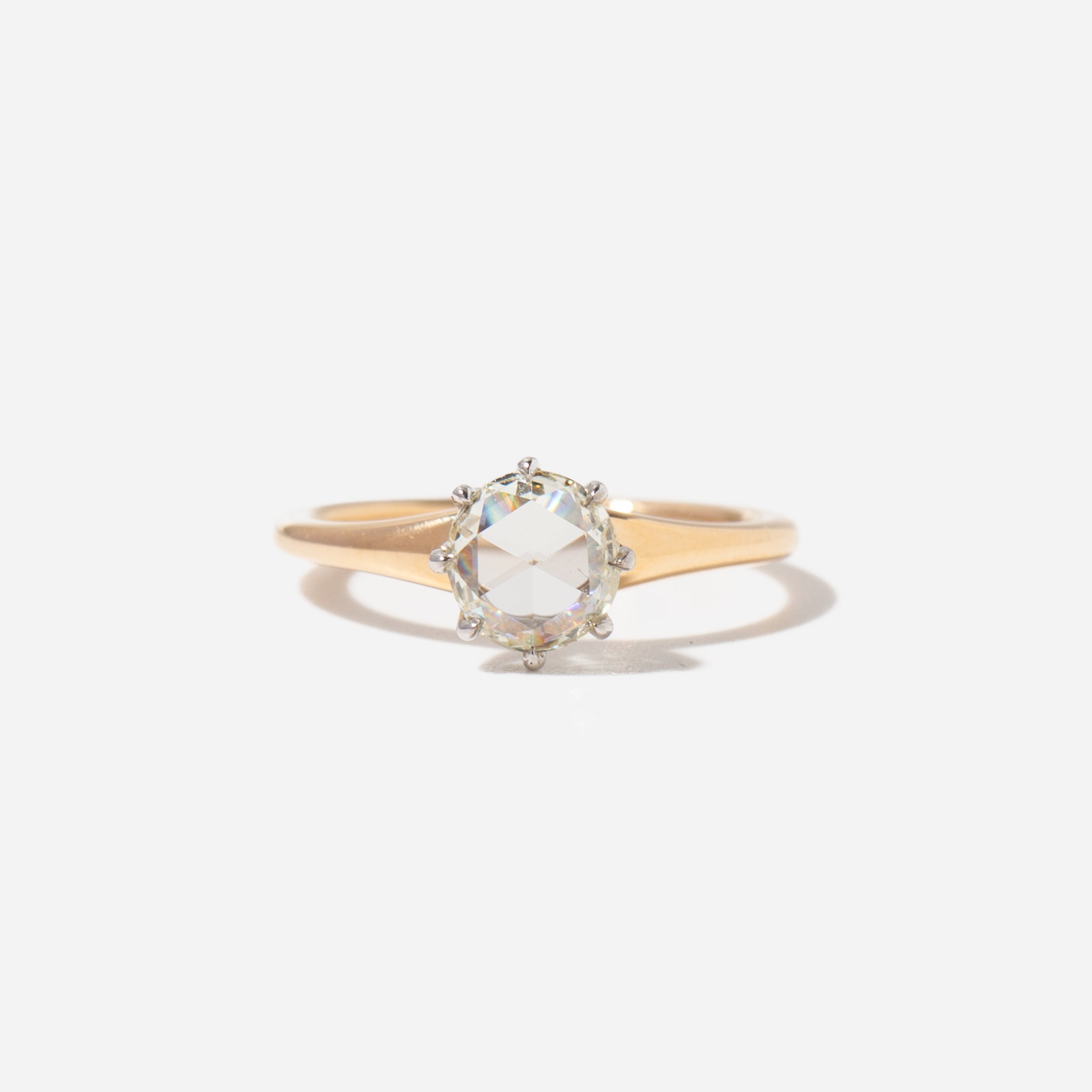 18 karat gold and platinum with an antique rose-cut diamond totaling 0.91 carat.