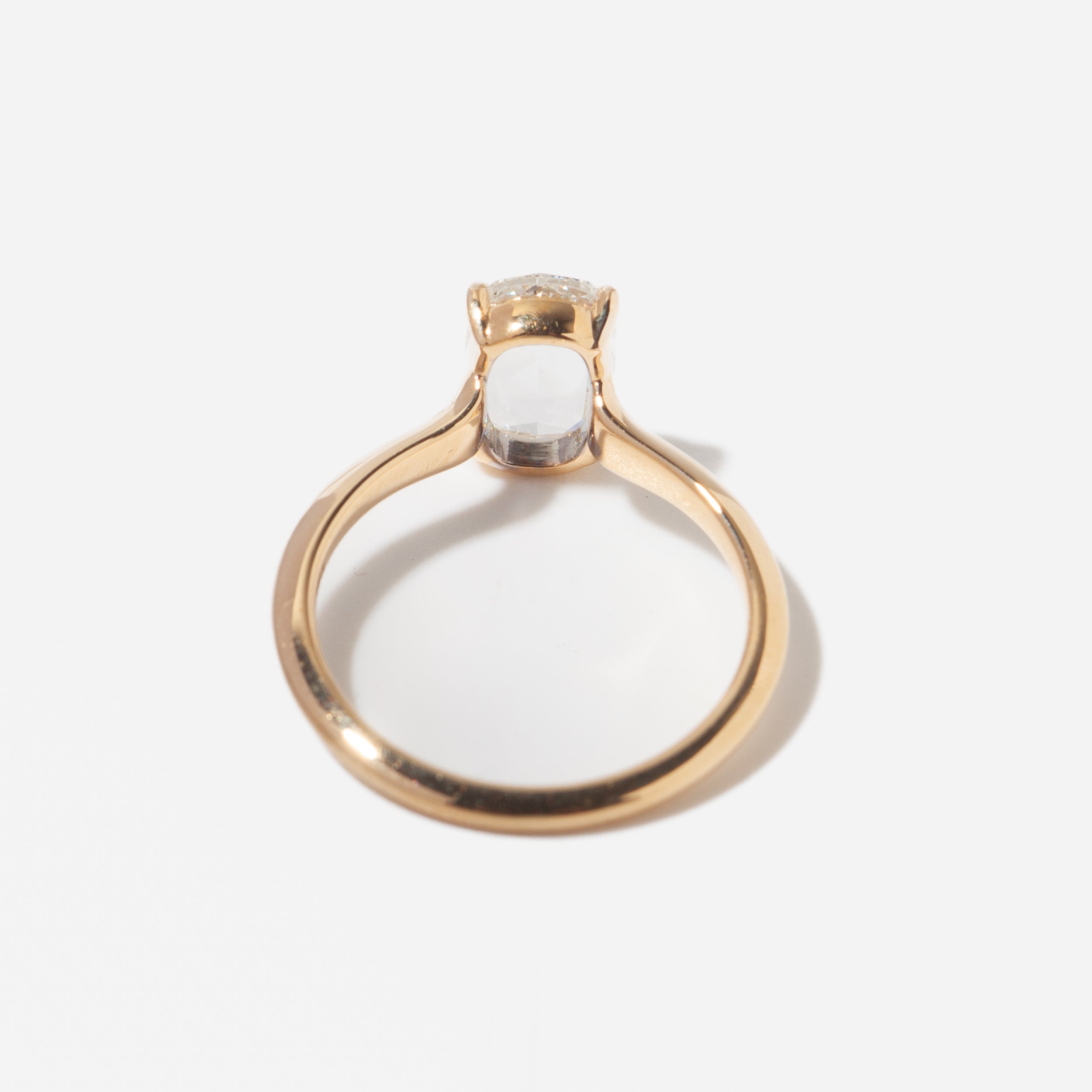 18 karat gold with a GIA certified rose-cut cushion diamond (G color/SI2 clarity) totaling 1.34 carat.