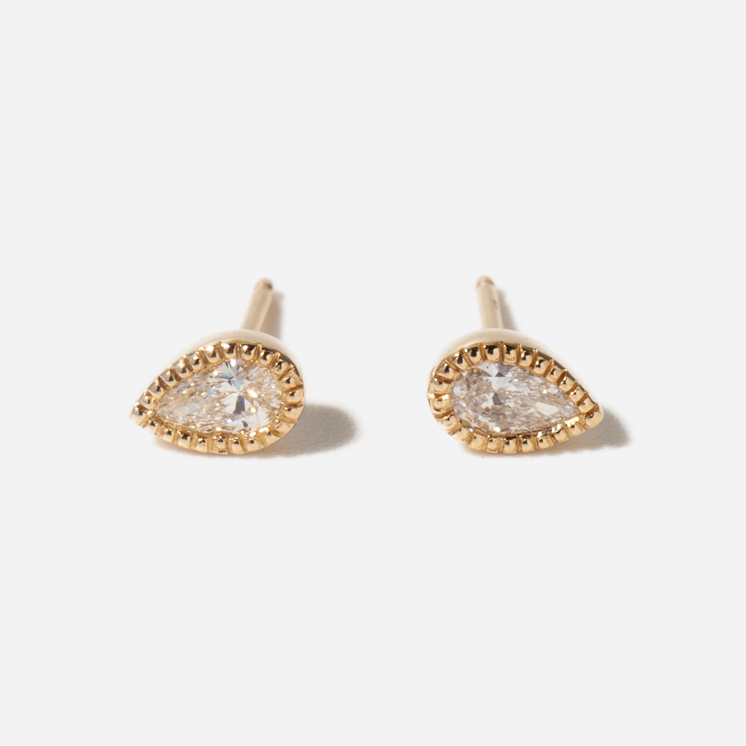 Graceful pear diamonds are delicately held in Jennie Kwon's signature milgrain bezel. With beautiful sparkle these studs are bound to become your new favorite earring. Wear solo or paired with a few other dainty studs. Handcrafted in Los Angeles.