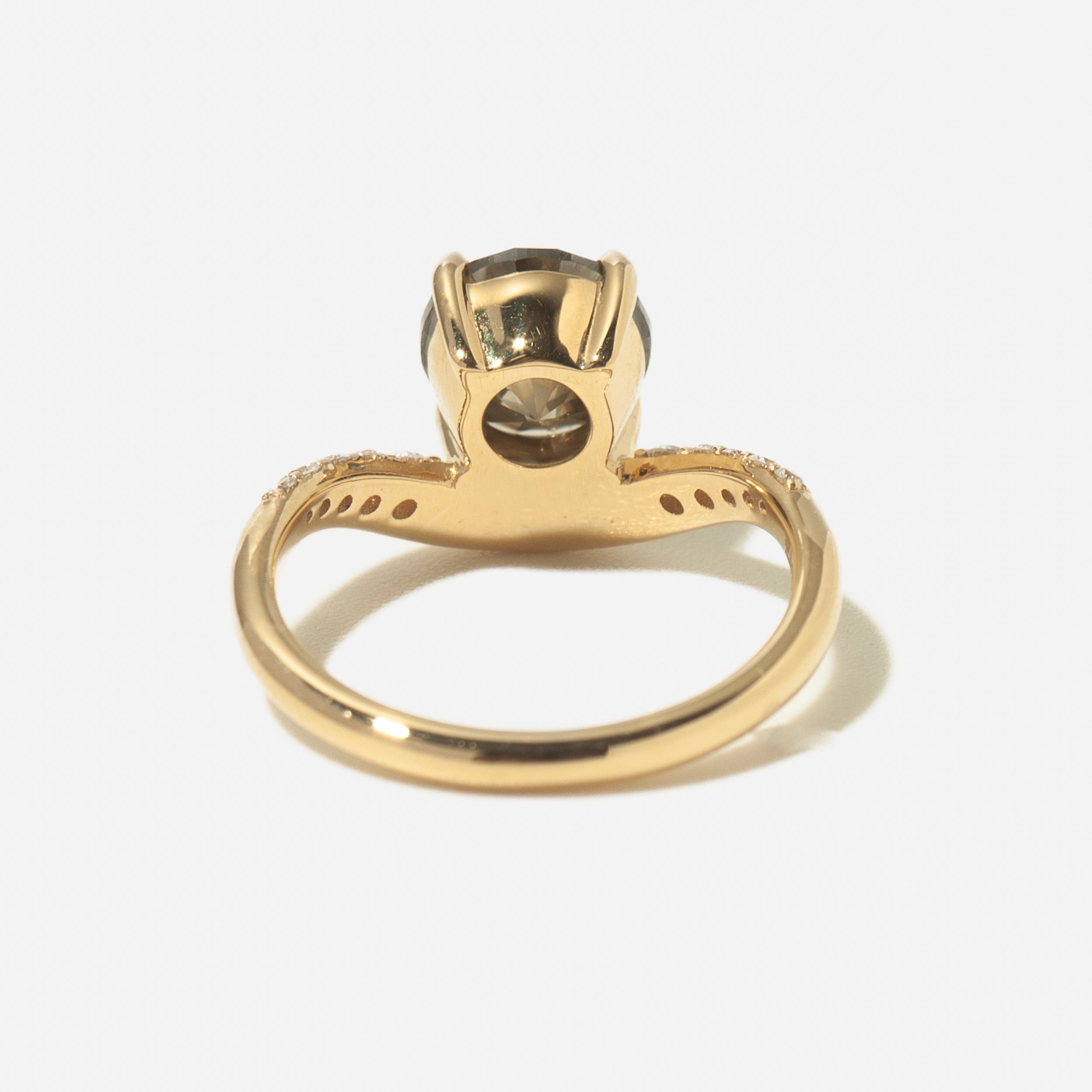 18 karat yellow gold set with a 2.14 carat Green Round Diamond.