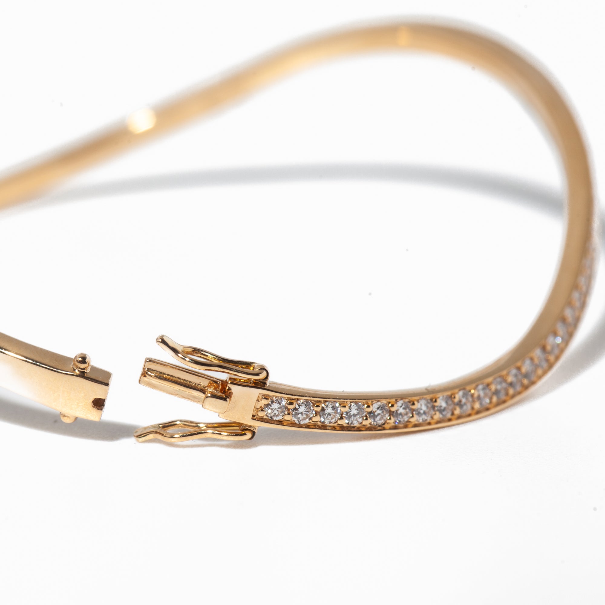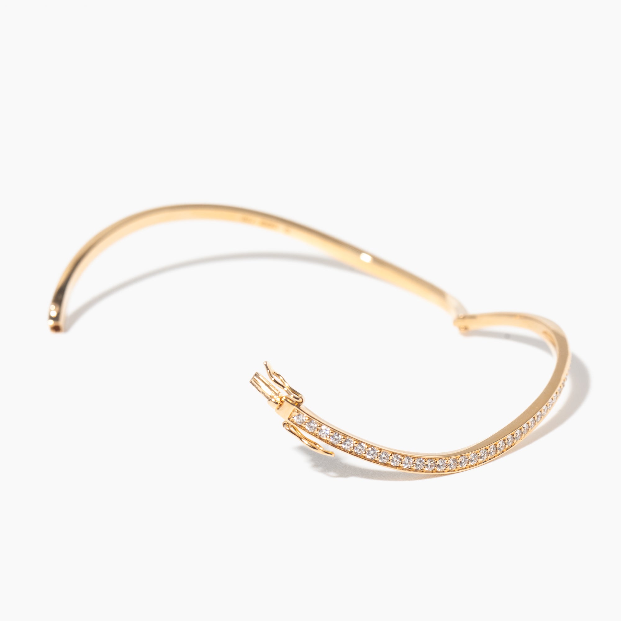 The Courbe bracelet is a timeless and classic bangle, resembling the iconic Bille Brahe wave design with a pavè set of diamonds in the front. The bangle bracelet is designed for a snug fit so it dosen't turn when worn. Handmade in Italy.