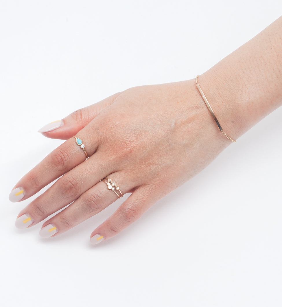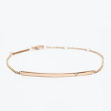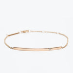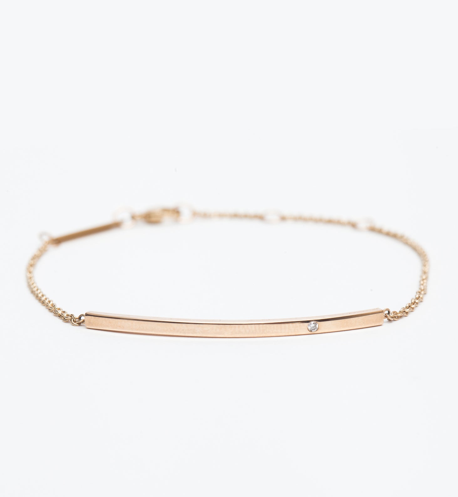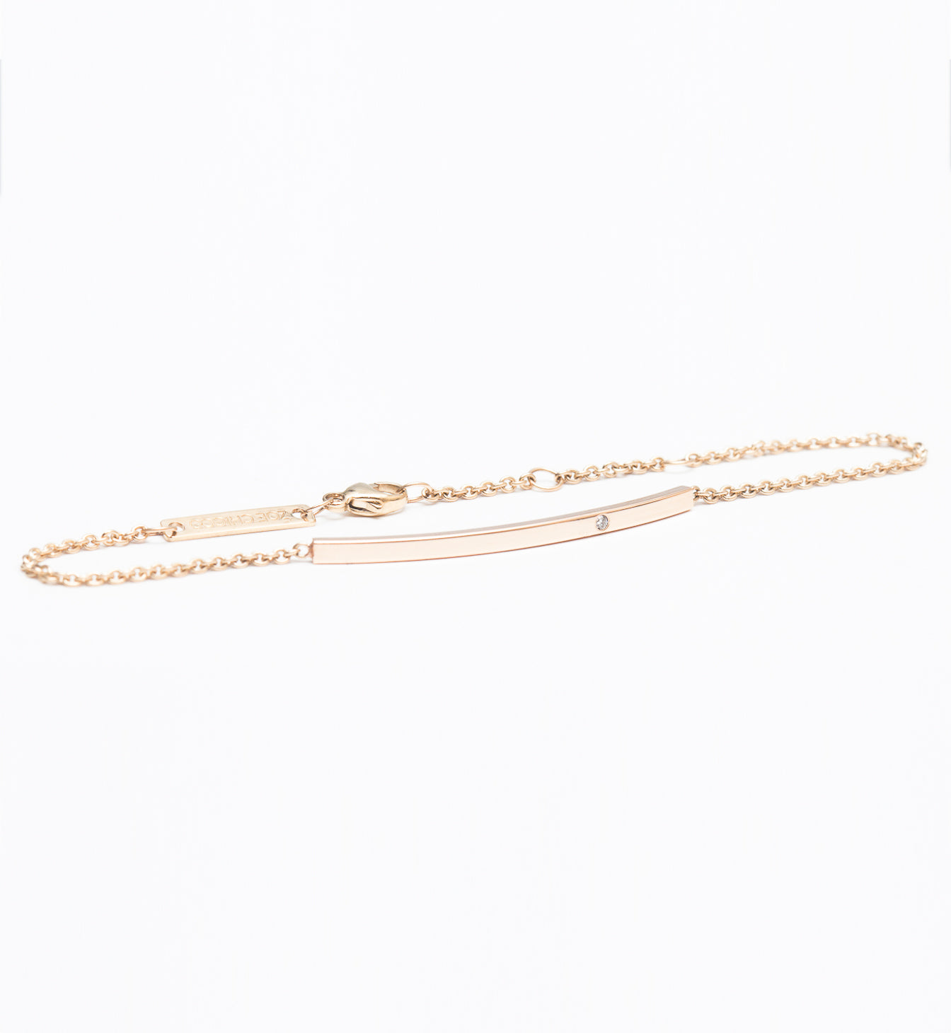 A single, off-center diamond brings a modern edge and sparkling accent to this gold bracelet. Zoe Chicco balances delicate proportions with powerful shapes by stringing a long, skinny bar on tonal cable chain. The result is an effortless style with a glamorous, gleaming look you'll wear for forever. Finished with hallmarked logo plate and spring ring clasp closure. Made in the U.S.A.