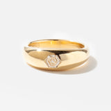 This dome pinky ring features a unique hexagon-shaped diamond that catches the light with every move. Crafted in warm gold, its bubbly shape adds a fun and charming touch to your finger. Perfect for adding a little sparkle and personality to your everyday style!