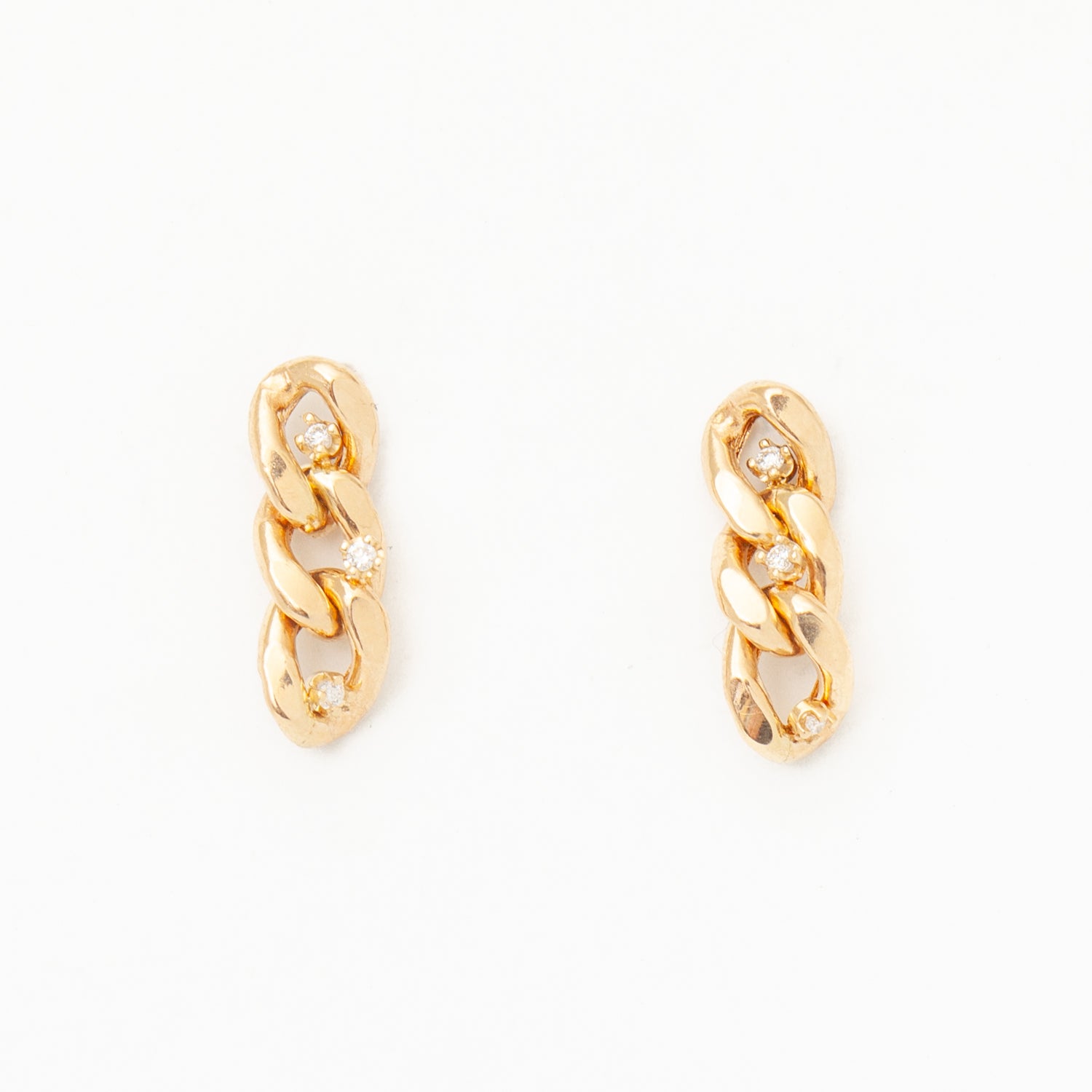 Gleaming Cuban links dangle from your ears creating a bold statement piece while three dazzling diamonds sparkle effortlessly. Wear these solo as the star of the show or add studs for a stacked look. You won't be able to resist this style from Zoe Chicco! Designed in Los Angeles.